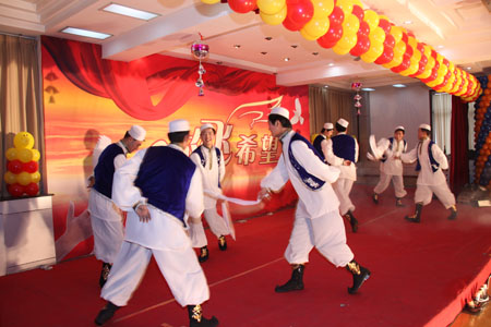 團拜會上,還為大家表演了精彩的文藝節目,這些節目都是由公司員工及員工子弟表演。