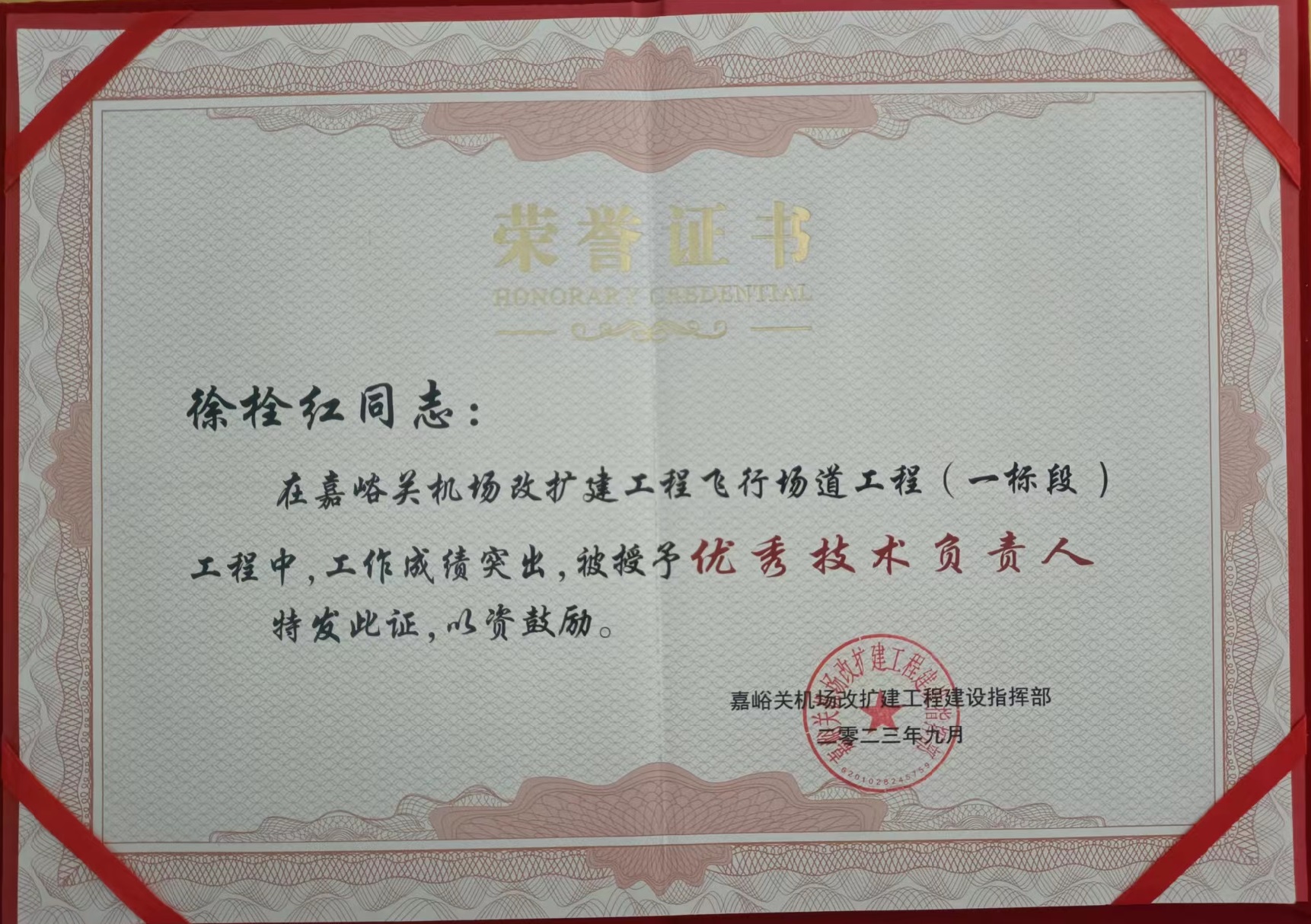 近日,嘉峪關(guān)機場改擴建工程建設指揮部對在嘉峪關(guān)酒泉機場改擴建工程中作出重要貢獻的參建單位給予通報表彰,公司榮獲“嘉峪關(guān)機場改擴建工程飛行場道工程 (一標段)優(yōu)秀組織管理單位”稱號,徐栓紅同志被授予“優(yōu)秀技術(shù)負責人榮譽稱號”。?