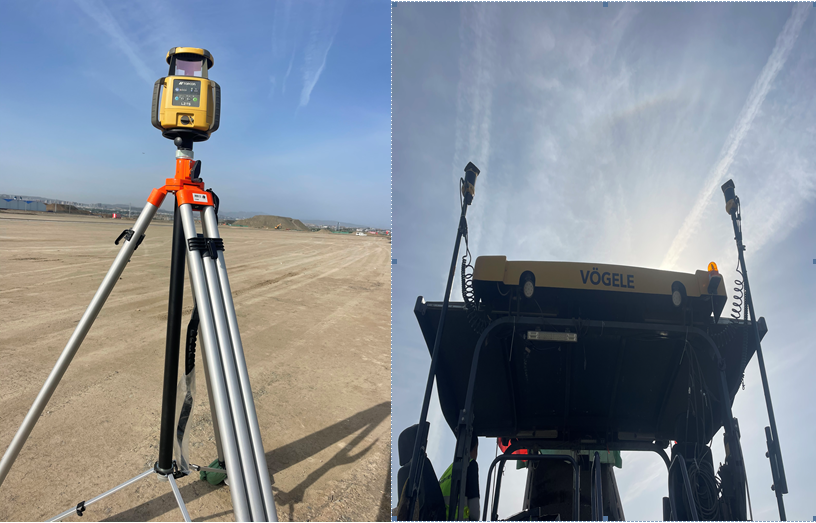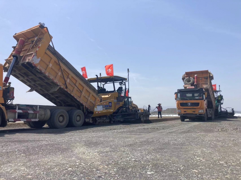 為保證攤鋪順利進行,項目部前期做好各項準備工作,在施工過程中,嚴格把控施工環(huán)節(jié),確保攤鋪施工銜接有序,高效優(yōu)質(zhì),一次成型,并使用mmGPS 3D攤鋪技術(shù)進行兩機聯(lián)鋪。
